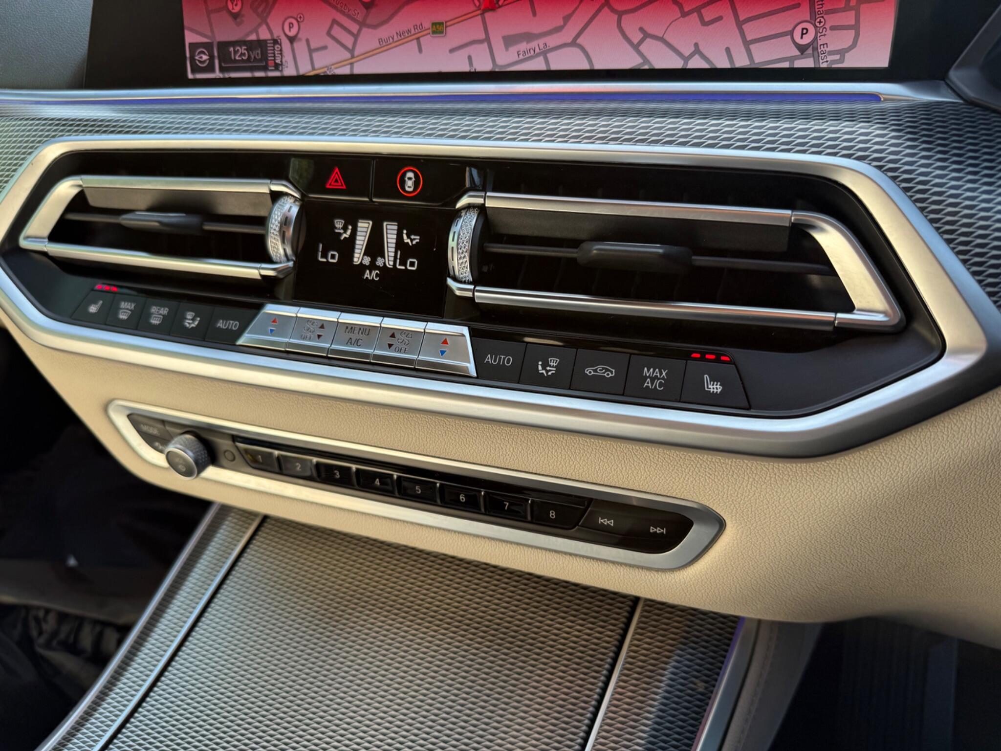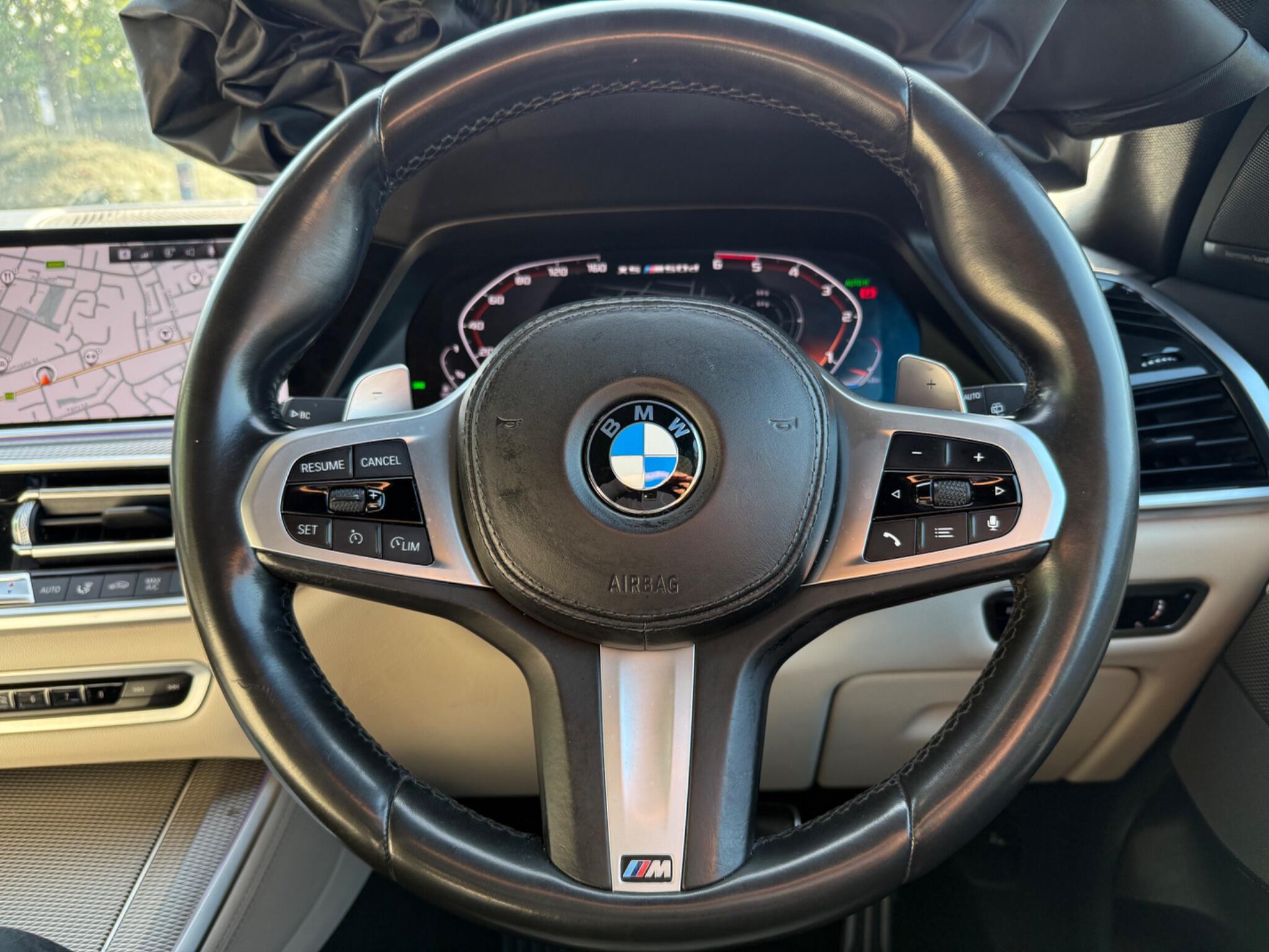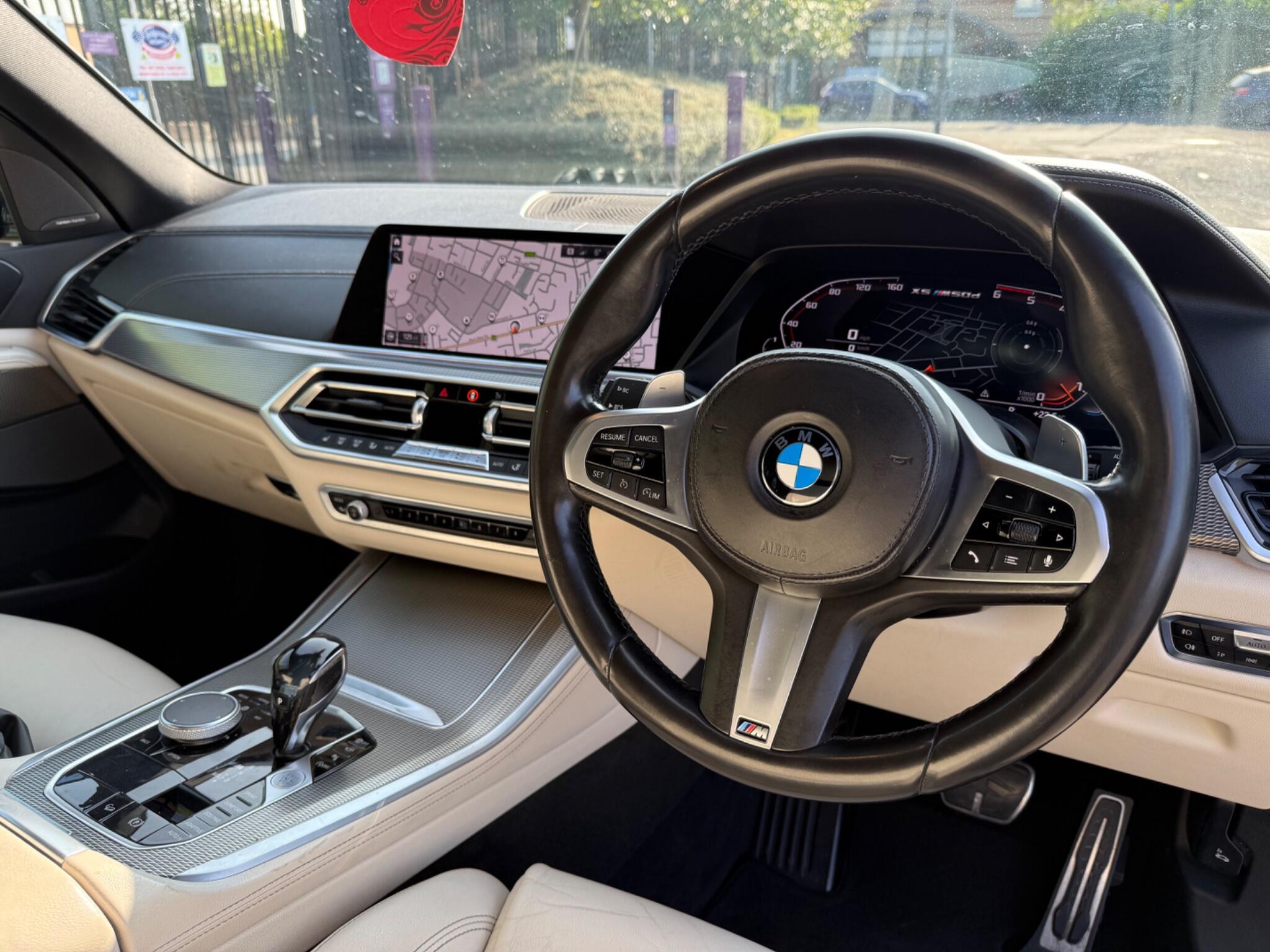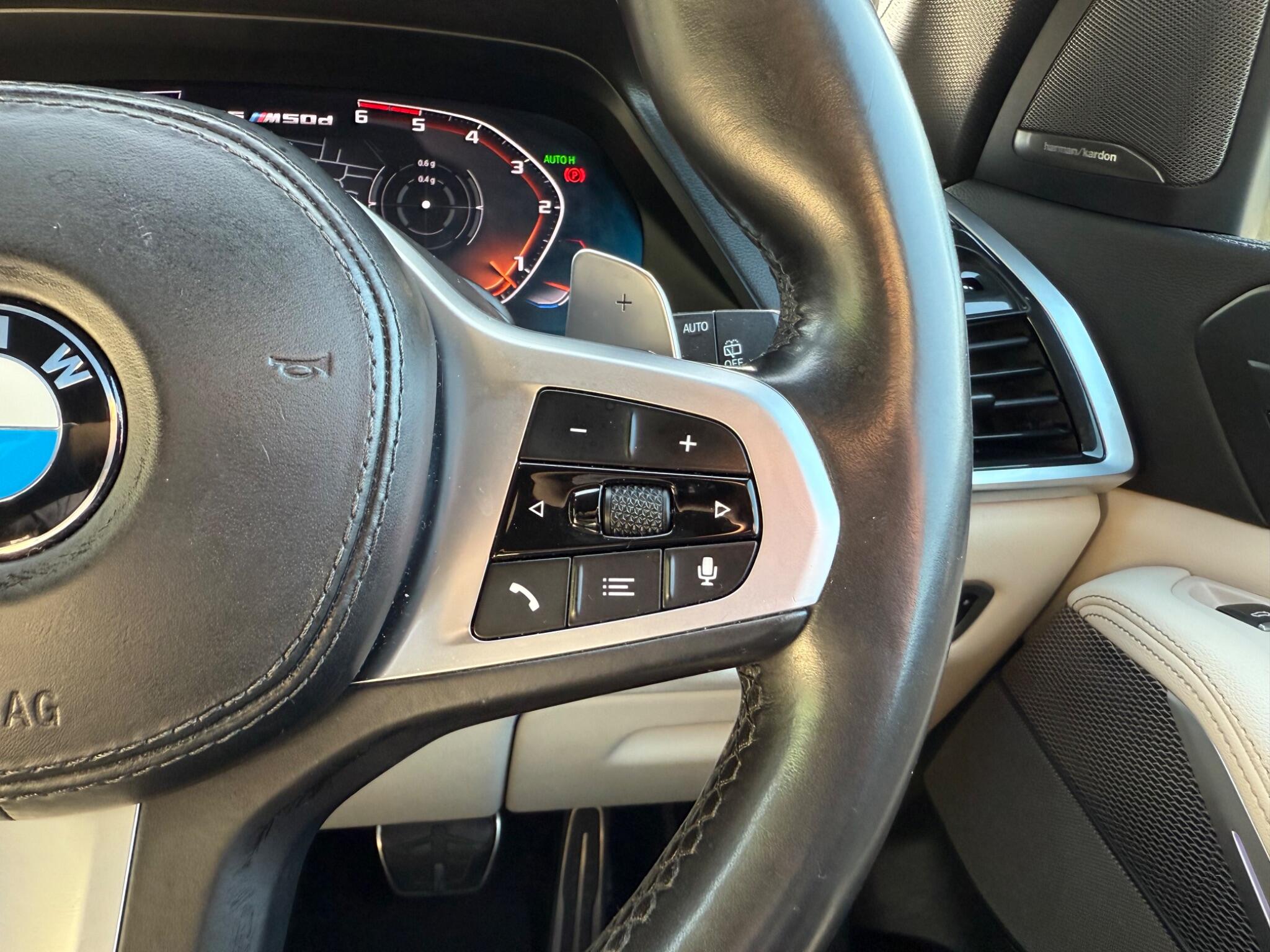 2-FORMER-KEEPERS-HARMON-KARDON-SOUND--360cCAMERAS-PARKING-ASSIST-FRONT-AND-REAR-HEATED-SEATS-HEADS-up-DISPLAY-Heated-cooling -CUP-HOLDERS-BMW Connected Package Professional, 360 Surround cameras, Technology Package, Head Up Display, M Sport Exhaust System, Sun Protection Glazing, Telephony with Wireless Charging, Multi-Function Controls for Leather Steering Wheel, M Aerodynamic Bodystyling, Adaptive M Suspension, M Sport Braking System, Cruise Control with Brake Function, BMW Gesture Control -This 2019 BMW X5 M50d offers a compelling blend of performance and luxury, boasting a powerful 3.0L diesel engine and a sophisticated four wheel drive system. As a Euro 6 compliant vehicle, it meets stringent emission standards. This X5 comes equipped with the desirable Comfort Package, which includes keyless entry, heated seats for enhanced comfort, and memory seat functions for personalised driving positions. Further enhancing its appeal are the striking 22 inch BMW Individual Light V Spoke Style 746 I alloy wheels with mixed tyres, the advanced BMW Live Cockpit Professional with Bluetooth connectivity, and the convenient Parking Assistant with rear parking sensors.